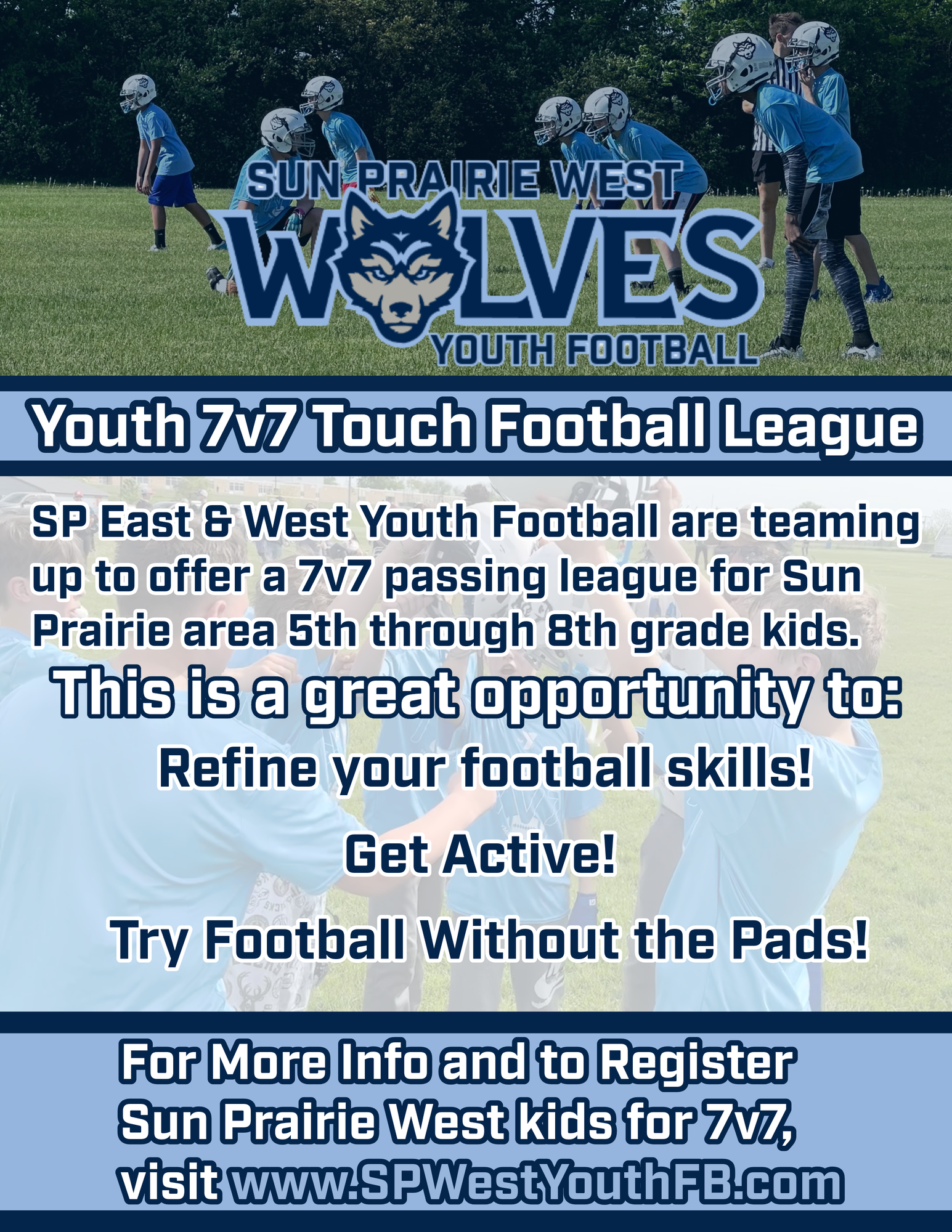 The 7v7 spring league is a non-contact 2 hand touch football league for current 5th-8th graders that helps kids stay active and work on their skills in the offseason. Registration is open! Click the link to register.